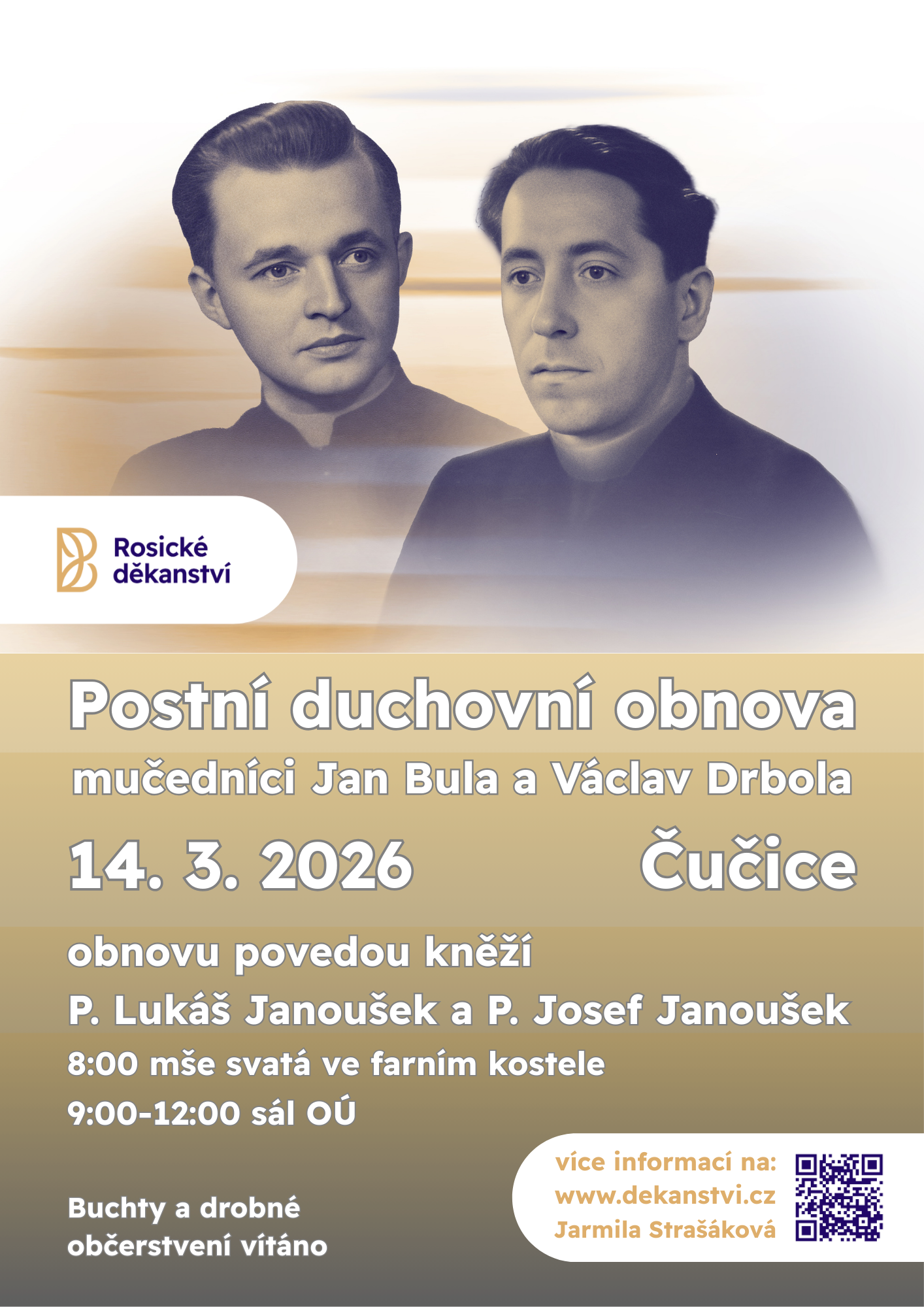 Zveme všechny zájemce na postní duchovní obnovu s o. Lukášem Janouškem a jeho bratrem o. Josefem Janouškem, zaměřenou na mučedníky Jana Bulu a Václava Drbolu